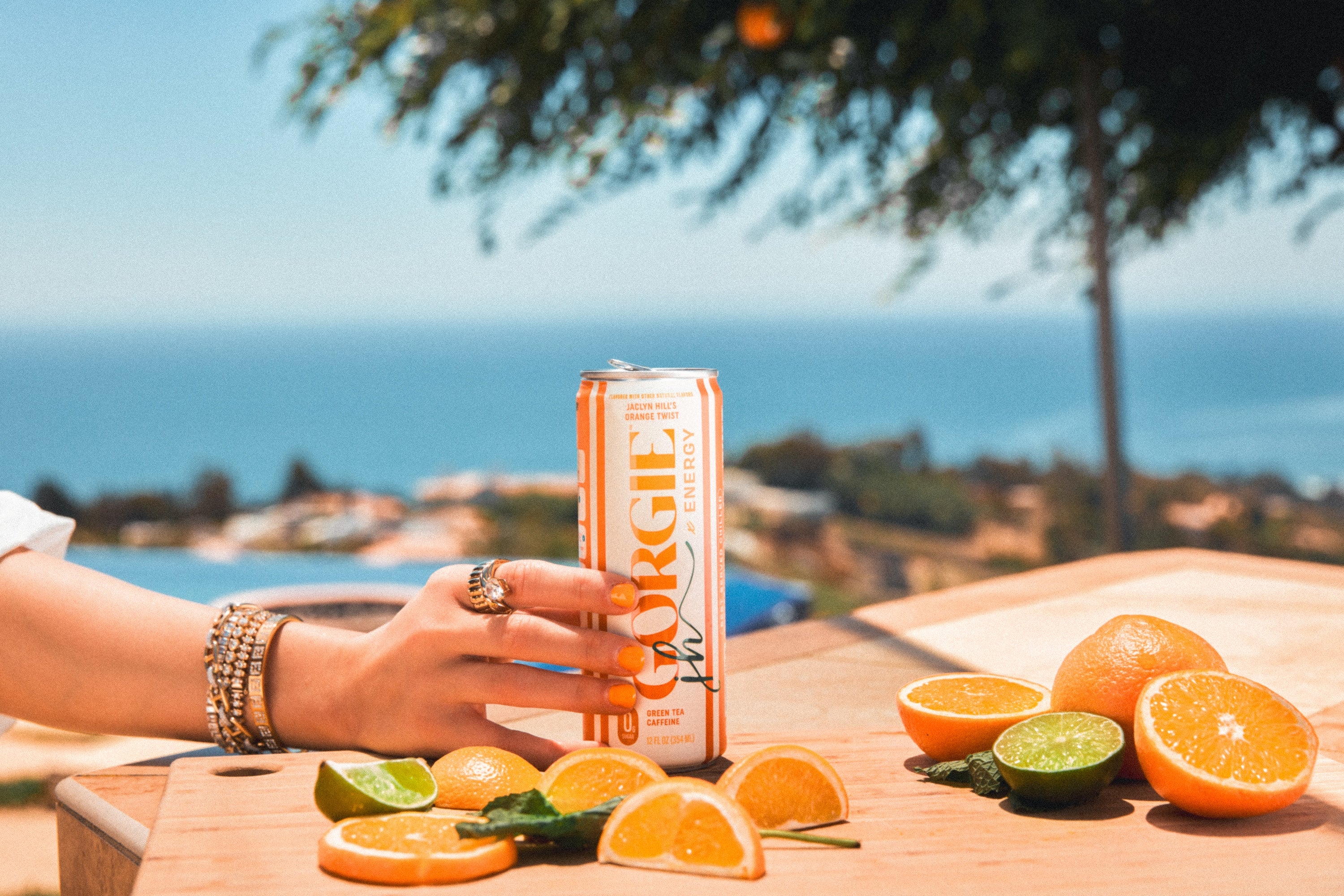 Filtered Carbonated Water, Citric Acid, Natural Orange Flavor and Other Natural Flavors, Potassium Citrate, Caffeine from Green Tea, Steviol Glycosides (Reb M), L-Theanine, Beta Carotene (for color), Ascorbic Acid (Vitamin C), Niacinamide (Vitamin B3), Ginger Root Extract, Pyridoxine Hydrochloride (Vitamin B6), Biotin, Cyanocobalamin (Vitamin B12)